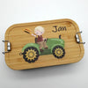 Brotdose personalisiert aus Edelstahl mit Bambus Deckel "Traktor"