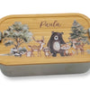 Brotdose personalisiert aus Edelstahl mit Bambus Deckel "Süße Waldtiere"