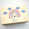 Erinnerungskiste Baby mit Namen "Regenbogen rosa Wolken blau"