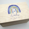 Erinnerungskiste Baby mit Namen "Regenbogen blau Dots"