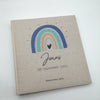 Fotoalbum personalisiert Baby, Kind "Regenbogen blau/mint" Leinen, Erinnerungsalbum