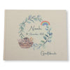 Liebevoll gestaltetes Gästebuch mit hochwertigem Leineneinband 25x20cm in Beige.