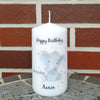 Geburtstagskerze/ Geburtskerze personalisiert mit Namen und Geburtsdatum "kleiner Elefant/Sterne" / Geburt/ Taufe/ Geburtstag