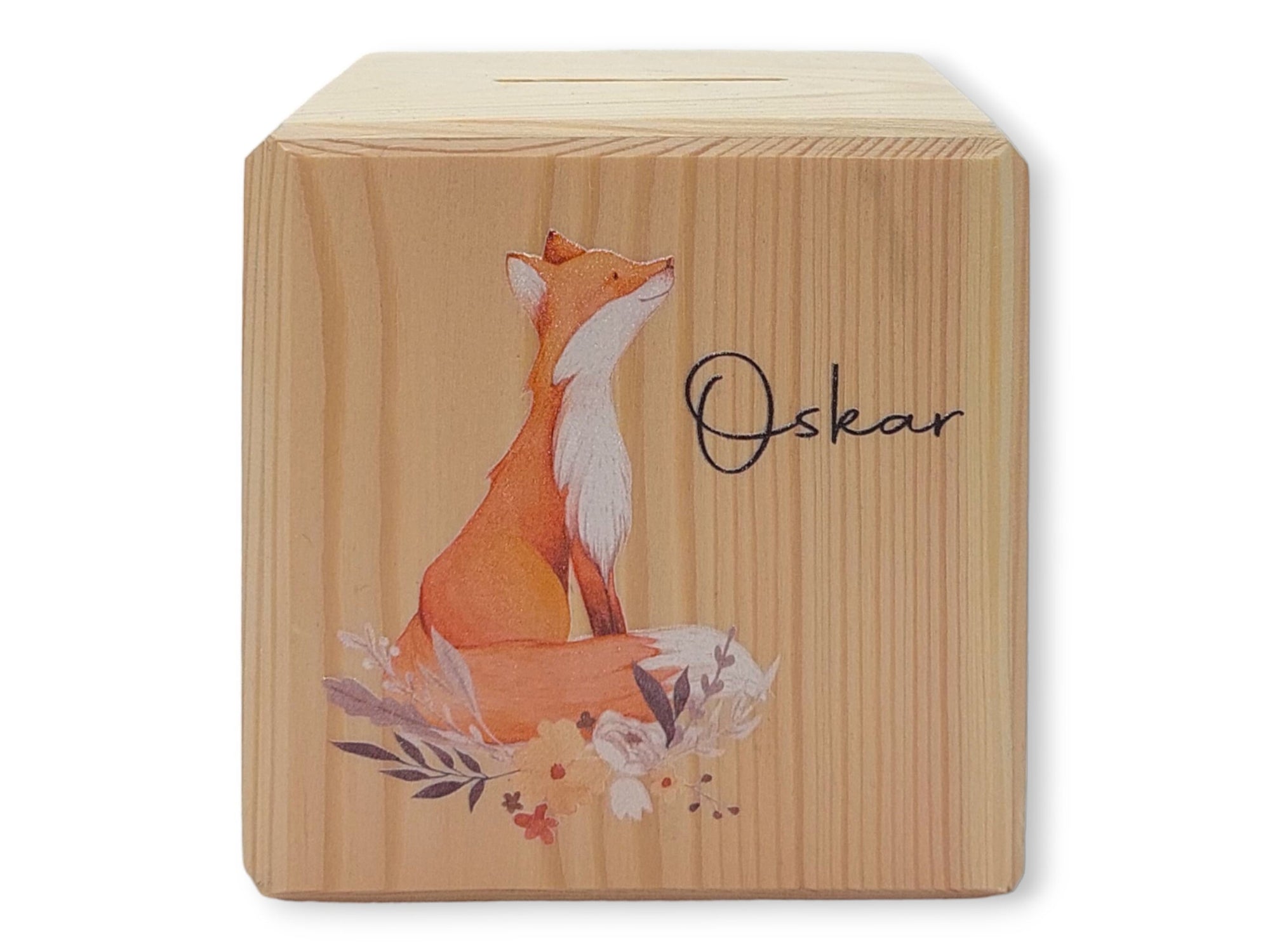 Holzspardose "Fuchs" personalisiert mit Namen