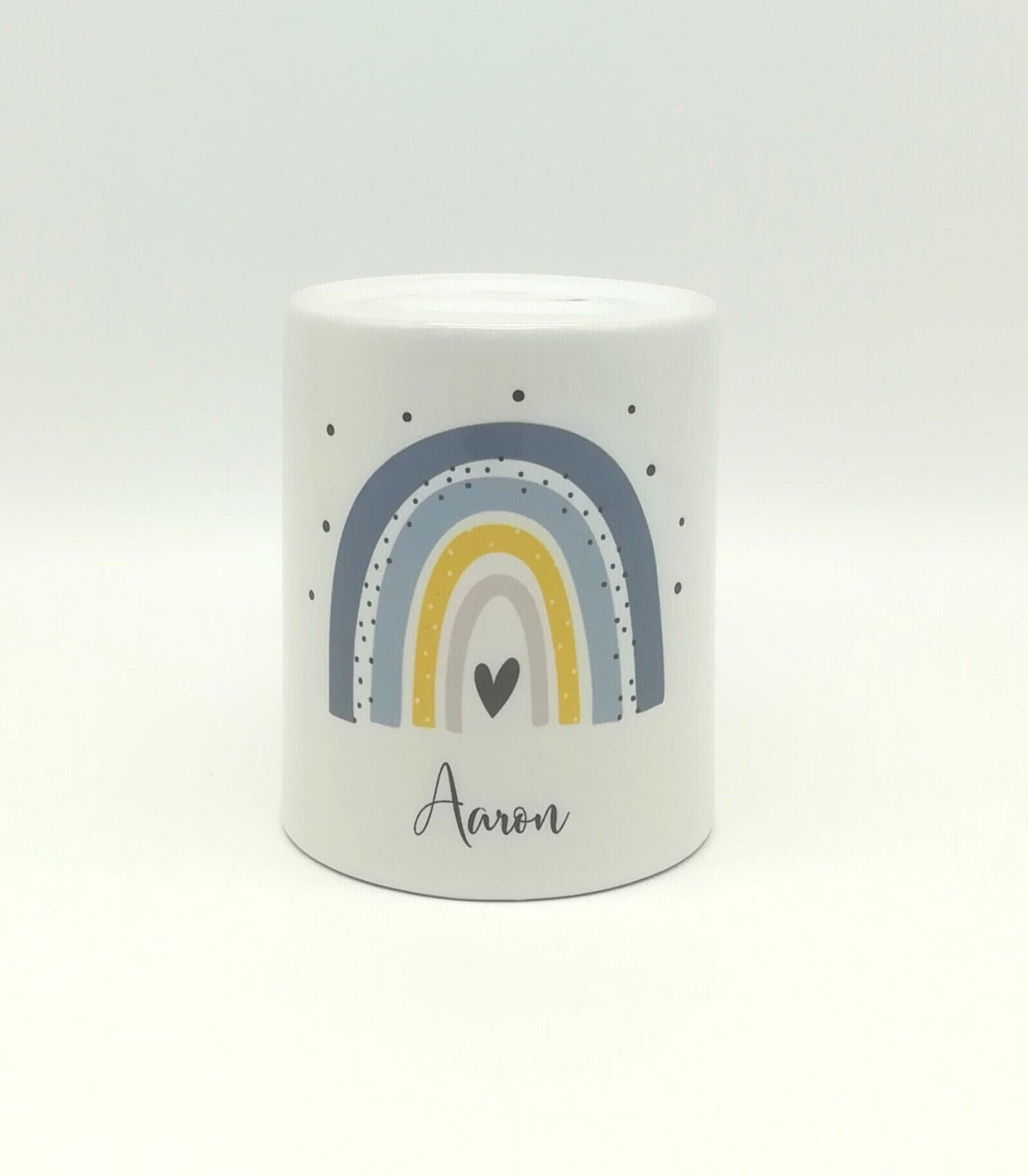 Spardose "Regenbogen blau" personalisiert mit Namen