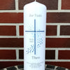 Taufkerze personalisiert mit Namen Datum und Taufspruch "Kreuz/ Punkte blau grau", Junge/ Mädchen, Taufkerze mit Namen und Datum,