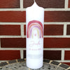 Taufkerze personalisiert mit Namen Datum und Taufspruch "Regenbogen watercolor rot", Junge/ Mädchen