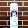 Taufkerze personalisiert mit Namen Datum und Taufspruch "Regenbogen rosa/lila", Junge/ Mädchen