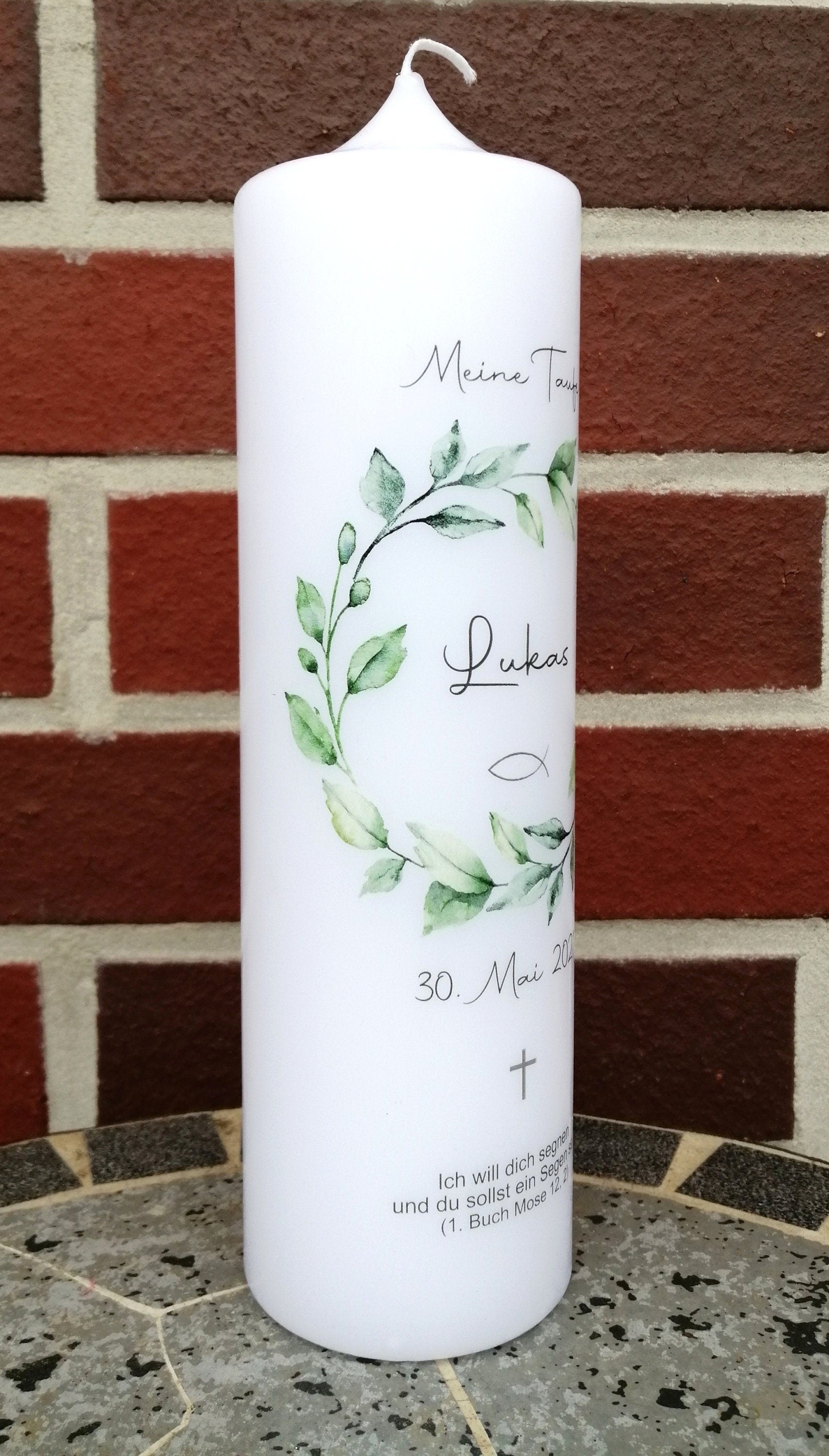 Taufkerze personalisiert mit Namen Datum und Taufspruch "Blumenkranz 6", Junge/ Mädchen
