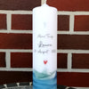 Taufkerze personalisiert mit Namen und Datum "Boot/Herz"