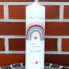Taufkerze personalisiert mit Namen und Datum "Regenbogen Punkte rot Symbole", Junge/ Mädchen