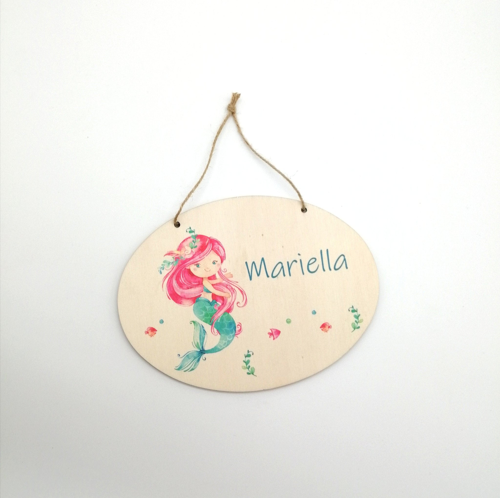 Türschild Kinderzimmer "Meerjungfrau" personalisiert mit Namen aus Holz/ Kinderzimmer/ Spielzimmer/