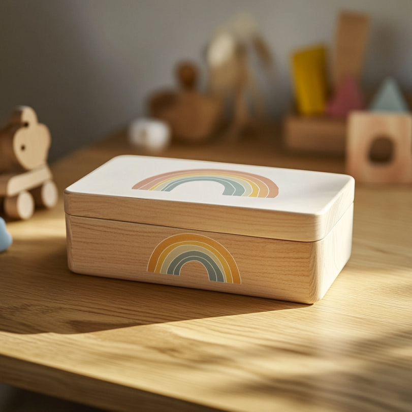Erinnerungskiste Baby mit Namen "Regenbogen Blumen"